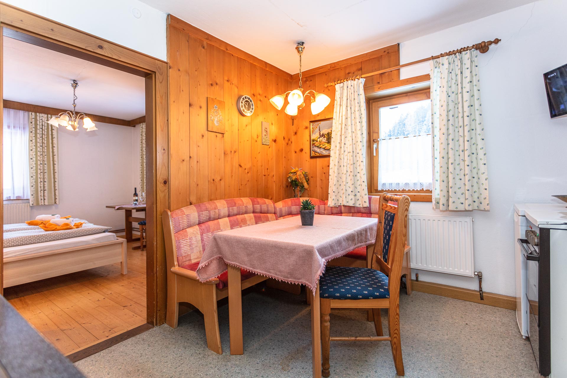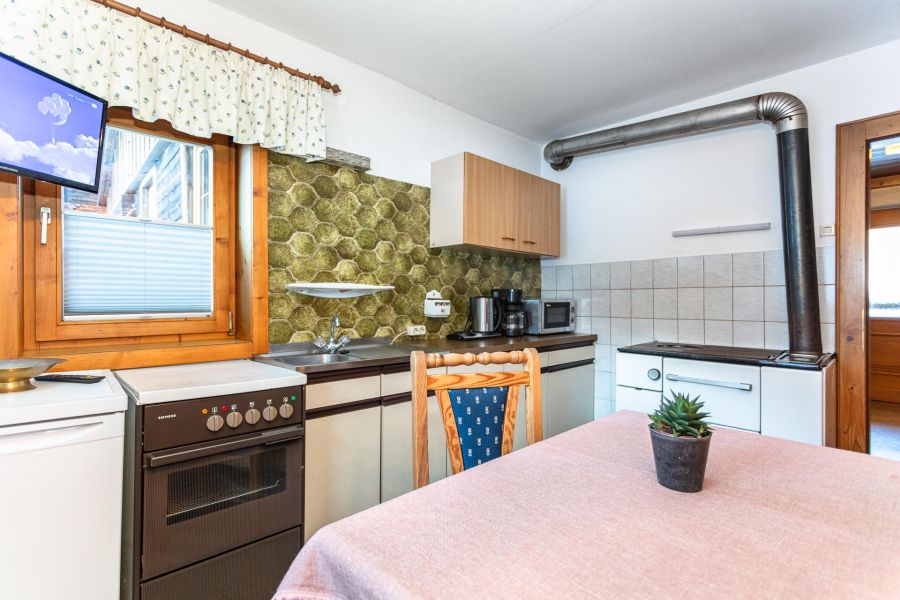 Unsere gemütliche und urige Ferienwohnung Enzian bietet Platz für 4 bis 6 Personen. Aufgeteilt ist die Unterkunft in einen Wohnraum mit Sitzecke und Kabel-TV und zwei Schlafzimmer. In beiden Schlafzimmern steht ein gemütliches Doppelbett, in einem Zimmer gibt es zusätzlich noch eine Schlafcouch, ein Stockbett ist, wenn gewünscht, ebenfalls vorhanden. Im Kochbereich stehen Euch ein E-Herd, Kühlschrank, Mikrowelle, eine Kaffeemaschine und ein Wasserkocher zur Verfügung. Ein Highlight in der Küche ist der Holzherd, gerne könnt Ihr Euch daran versuchen – wichtige Tipps zur Benutzung des Holzherds bekommt Ihr bei Lisbeth und das Holz für den Herd ist bereits inklusive. Zusätzlich gibt es noch einen eigenen Balkon, der gegen Süden ausgerichtet ist und einen hervorragenden Blick auf den Wildkogel bietet.