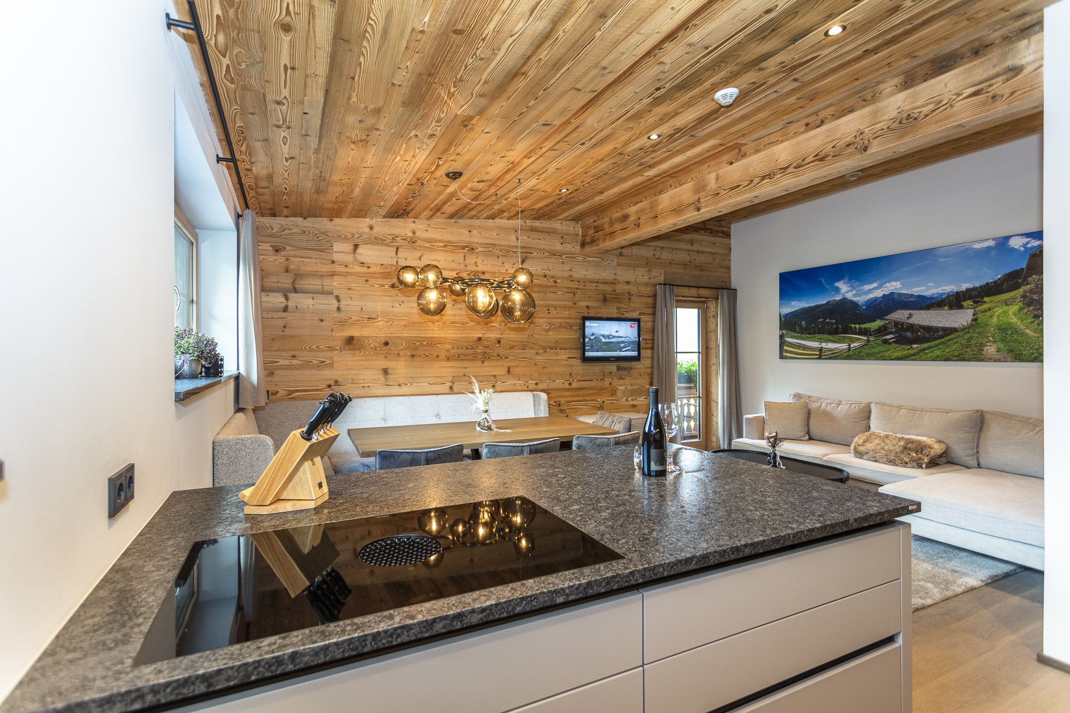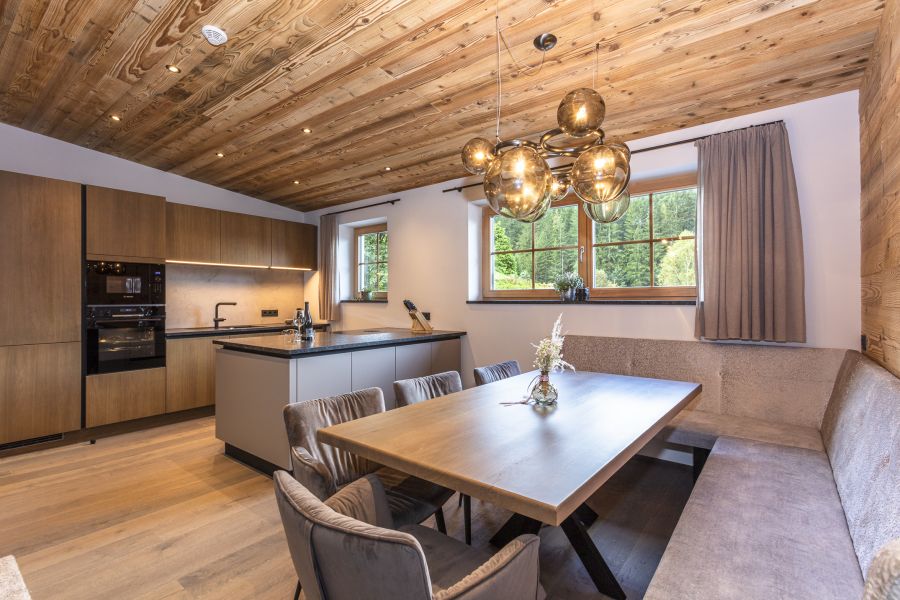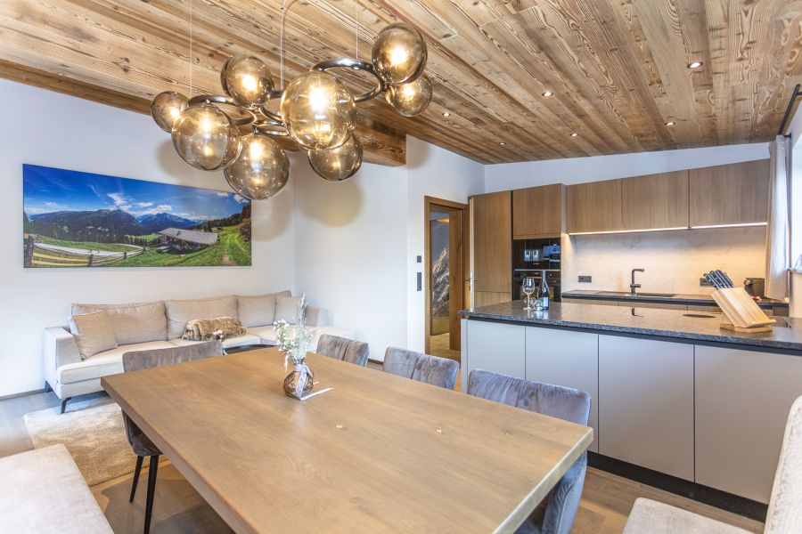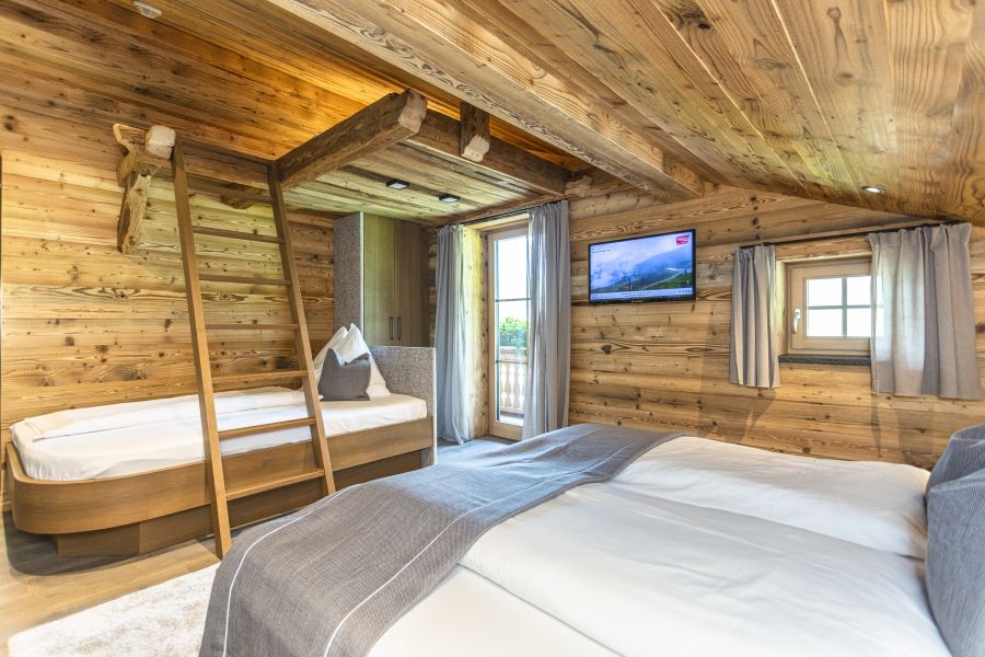 Verbringen Sie einen Urlaub mit Ihren Liebsten in unserer neu errichteten Ferienwohnung Schwarzkopf. Fühlen Sie sich wie zu Hause in unseren gemütlichen Schlafzimmern. Das erste Schlafzimmer der Ferienwohnung verfügt über ein großzügiges Doppelbett und in unserem zweiten Schlafzimmer finden weitere vier Personen in einem Doppelbett und in einem Stockbett genügend Platz. Zudem befindet sich in unserer Ferienwohnung ein Vorraum mit Gardarobe, ein Badezimmer mit Dusche, Badewanne und Doppelwaschtisch, ein separates WC sowie Fußbodenheizung in allen Räumlichkeiten. Entspannen Sie nicht nur in der eigenen Infrarotkabine, sondern auch mit der gesamten Familie in dem Wohnbereich der Ferienwohnung und zaubern Sie traditionelle Gerichte aus der Region in der vollausgestatteten Küche. Zusätzlich genießen Sie schöne Aussichten von Ihrem persönlichen Balkon aus in schönste Naturlandschaften.